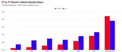 Electric Vehicle Market in Canada & the US. Chart by Matthew Klippenstein.